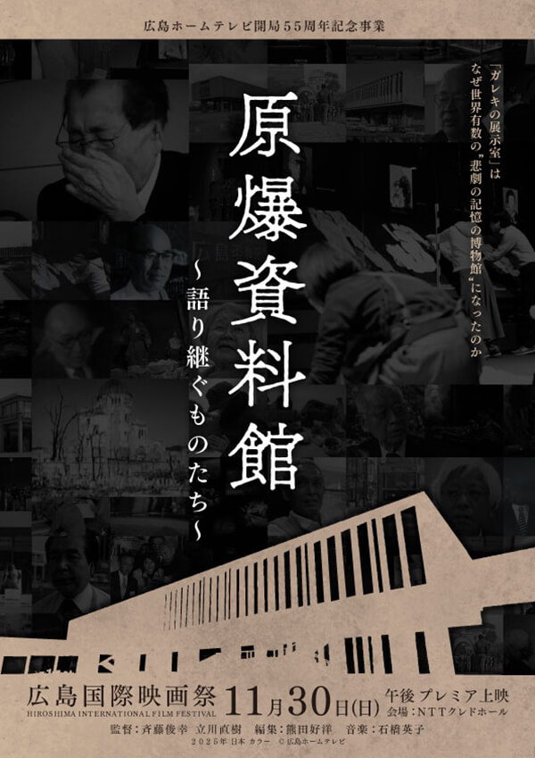 本作は、広島ホームテレビの開局55周年を記念して制作されたドキュメンタリー映画。開館70年を迎えた原爆資料館の歩みと、それを支えてきた人々の活動を描きます。斉藤監督はこれまで「ドキュメント広島 原爆資料館 閉ざされた40分 ~検証G7広島サミット~」など、原爆資料館に関連した番組を複数手掛けてきました。立川監督はそのプロデューサーを務め、20年にわたる原爆取材や、かつて原爆資料館長を主人公としたドキュメンタリー制作にも携わっています。